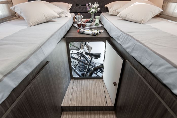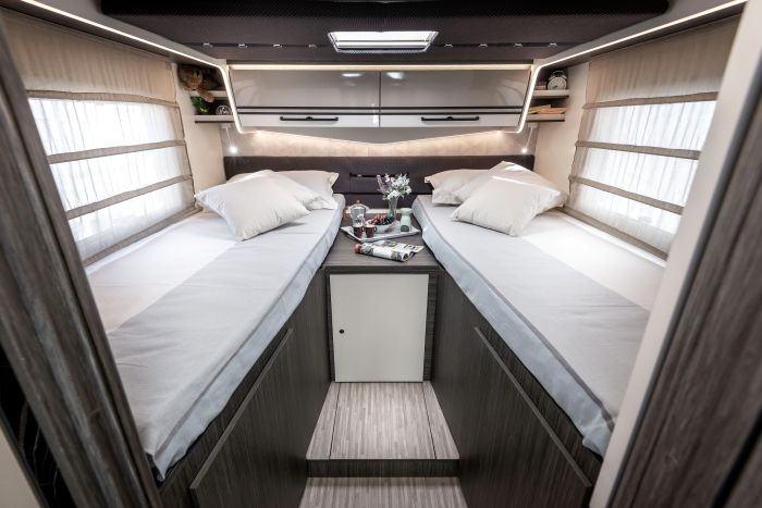 Broj kreveta: 5 (stražnji 200×80 + 200×80 / 215×171 cm, dodatni u dineti 216×50 cm, podizni krevet 203×135 cm)